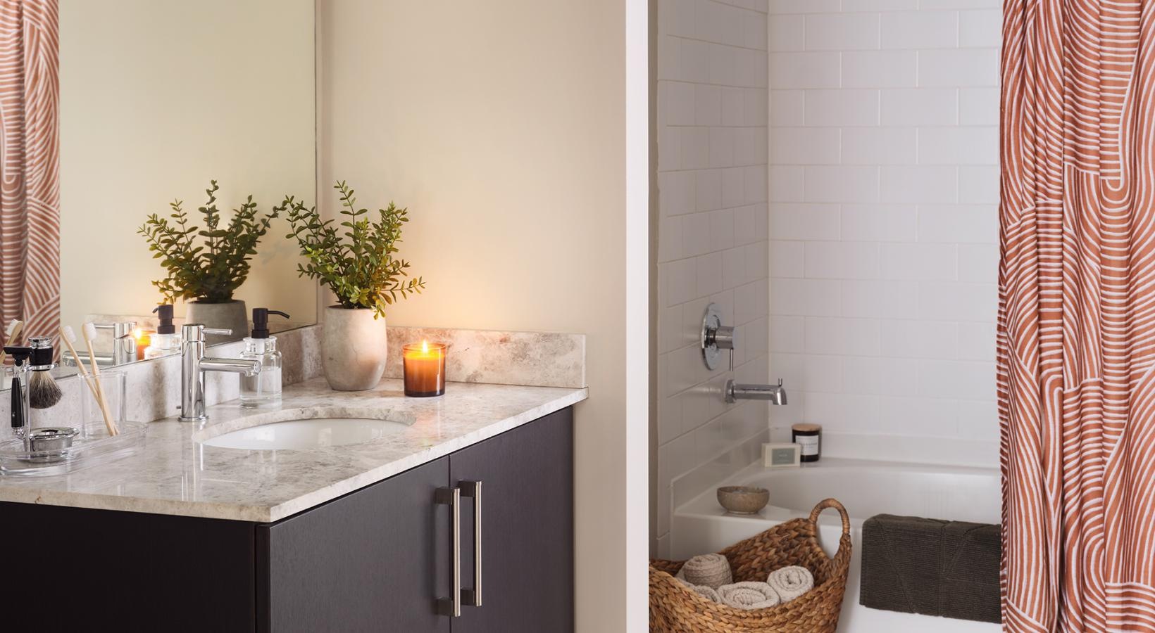 • a bathroom with a sink and a mirror