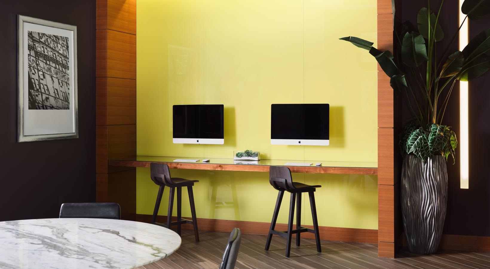• work area with computers and seating