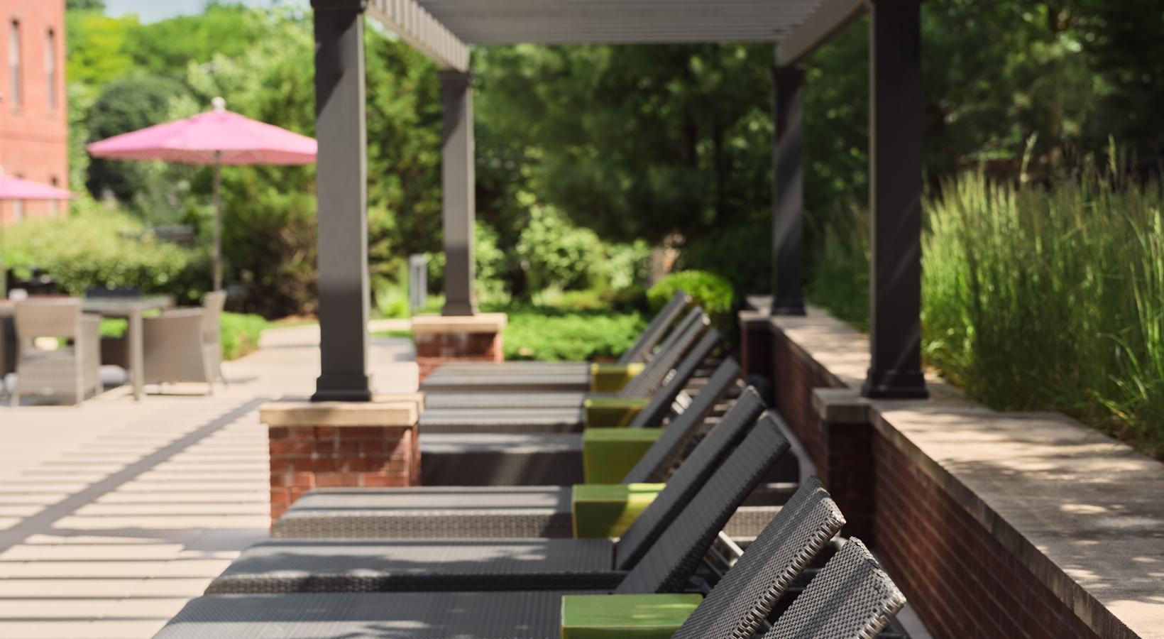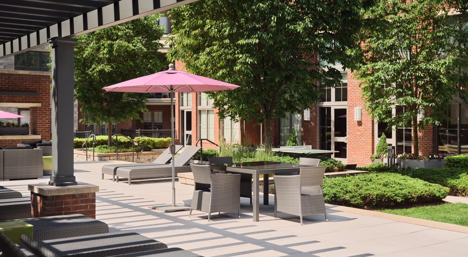 • a patio with a table and chairs